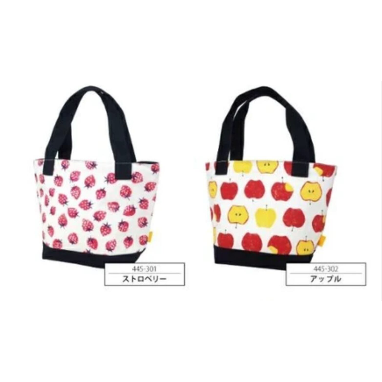 コットンキャンバス地(帆布)の風合いとフルーツ柄のプリントデザインが、爽やかな可愛いフルーツ柄ランチバッグとなっています。