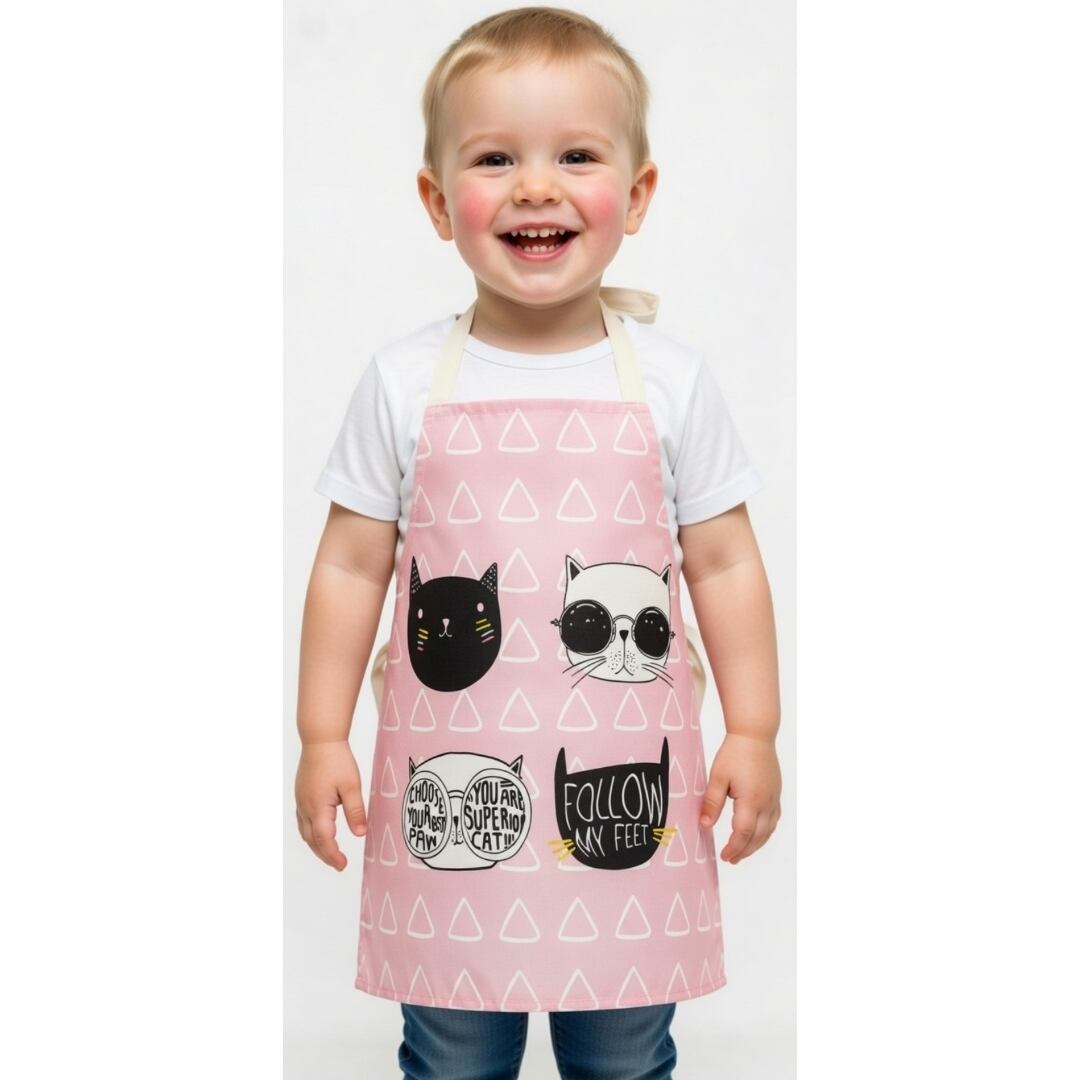 可愛らしい猫柄が魅力的な子供用エプロン。