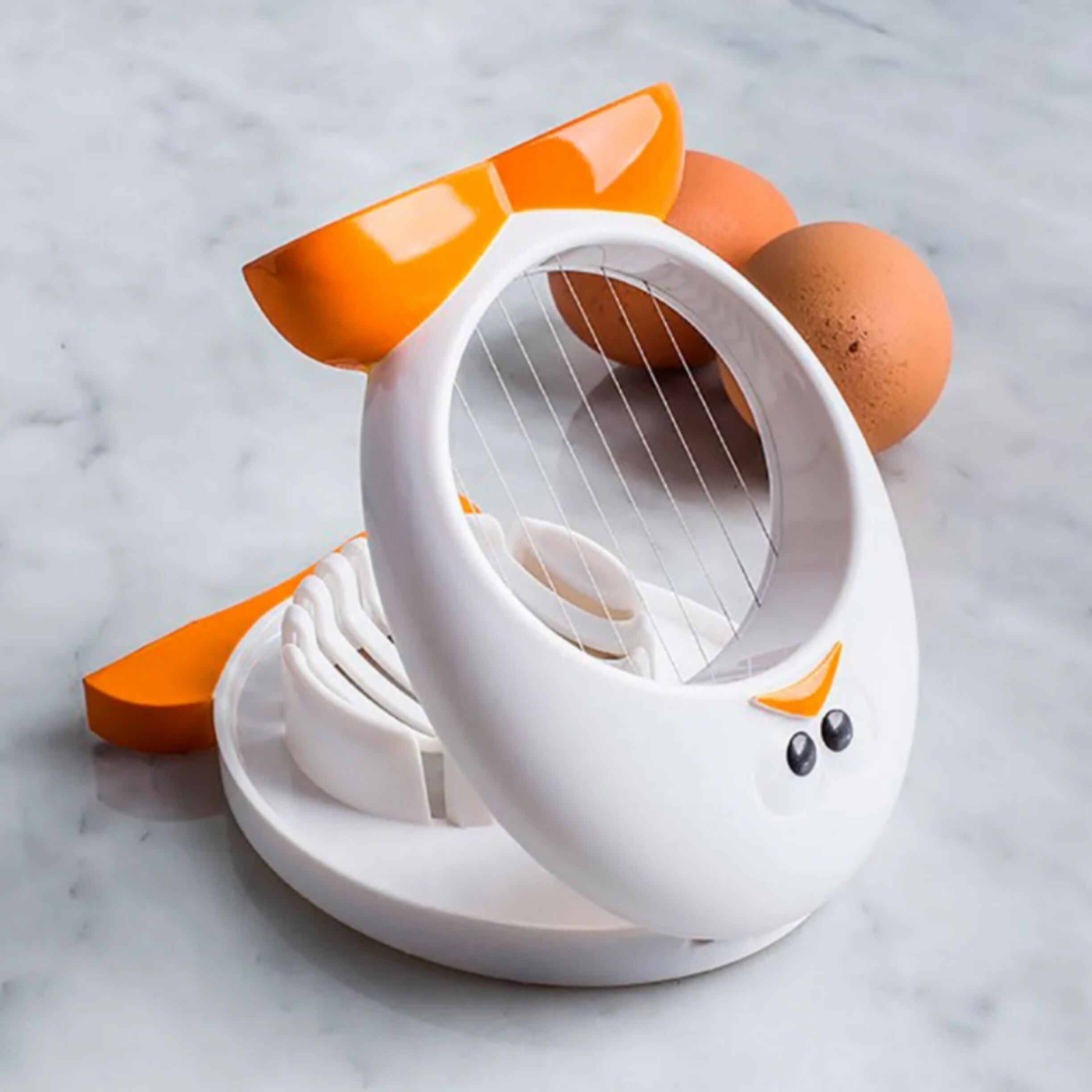 ゆで卵を美しく9つにカットできる、可愛らしいエッグスライサー。卵の形をしたデザインがキュートで、料理をより楽しいものにしてくれます。手で卵をカットする手間を省くことができるので、忙しい朝やパーティー準備にも大活躍!使いやすく、丈夫な作りなので長くお使いいただけます。キッチンでの作業をさらに楽しく、効率的にしてくれるアイテム、ゆで卵スライサーです。